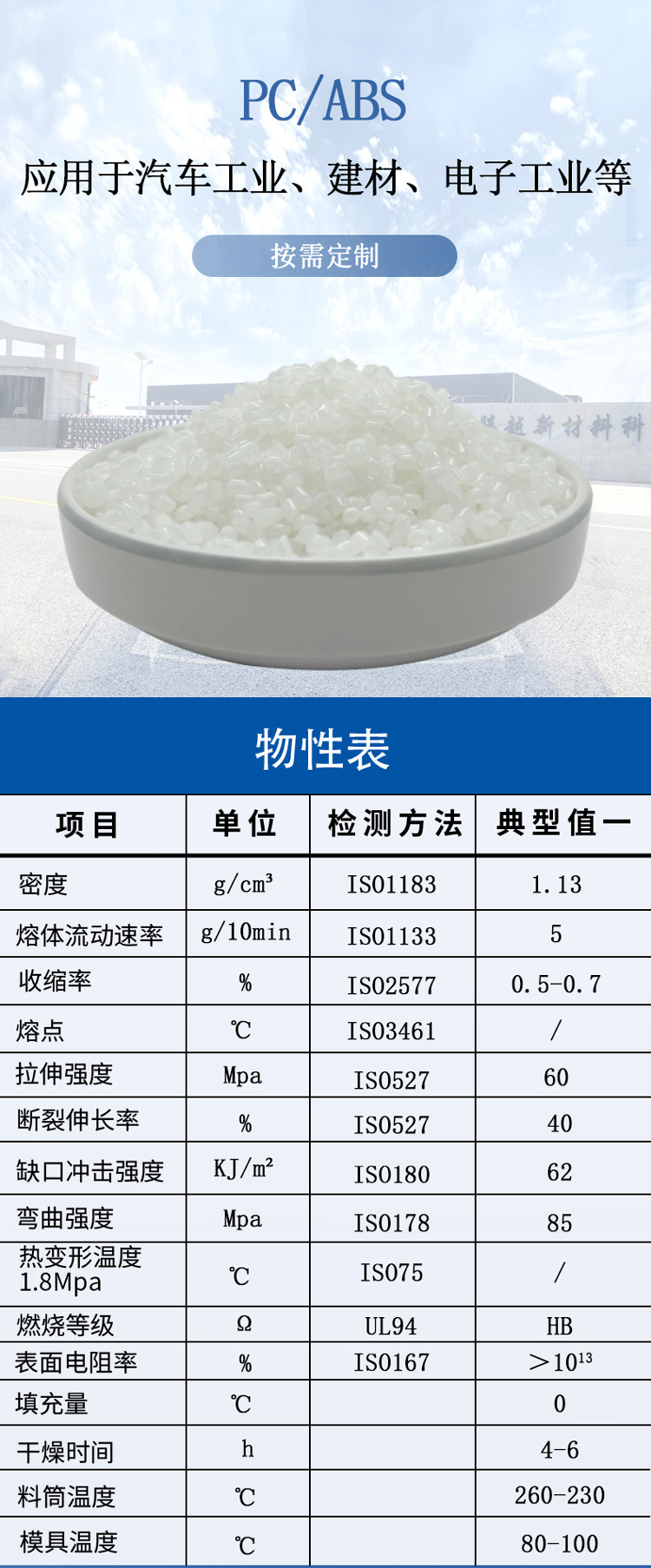 既具有PC樹脂的良好耐熱耐候性、尺寸穩(wěn)定性和耐沖擊性能,又具有ABS樹脂良好的加工流動性
